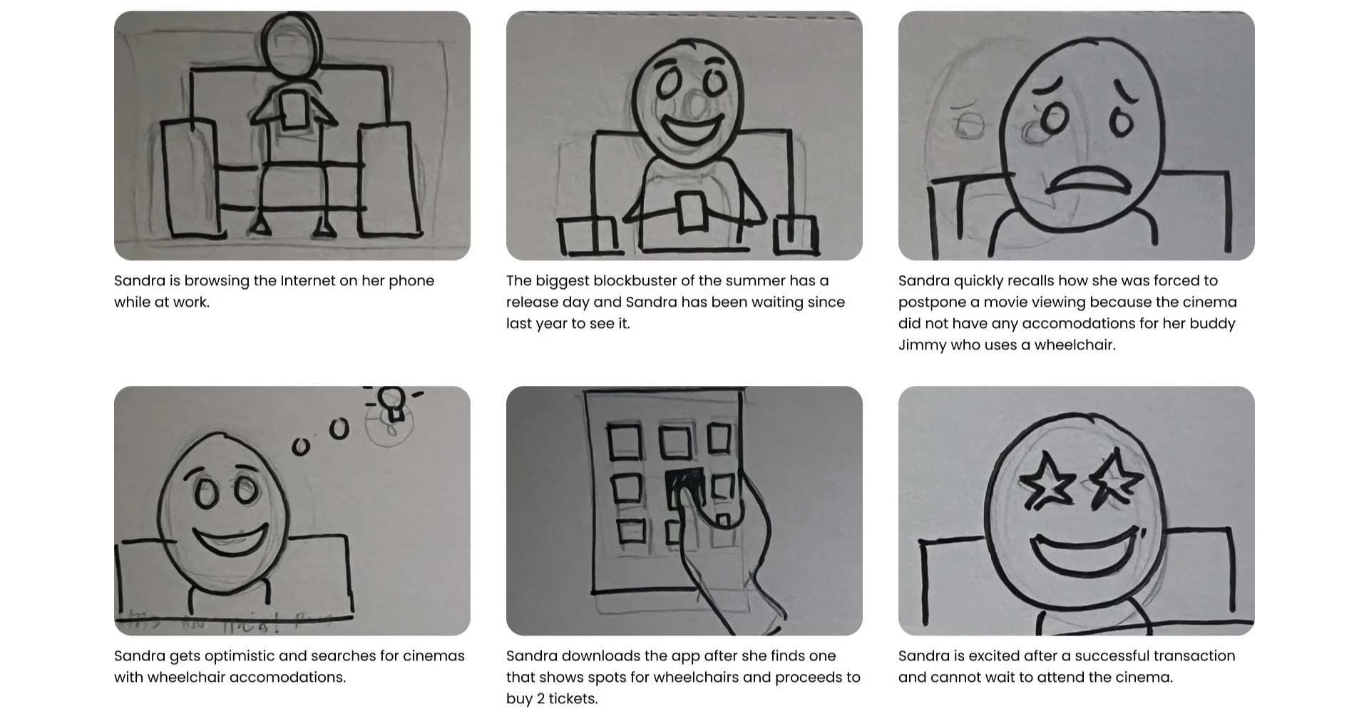 Early designs showed seating positions and availability but did not show accommodations for wheelchairs users. After the usability studies, I had that included in response to the feedback.